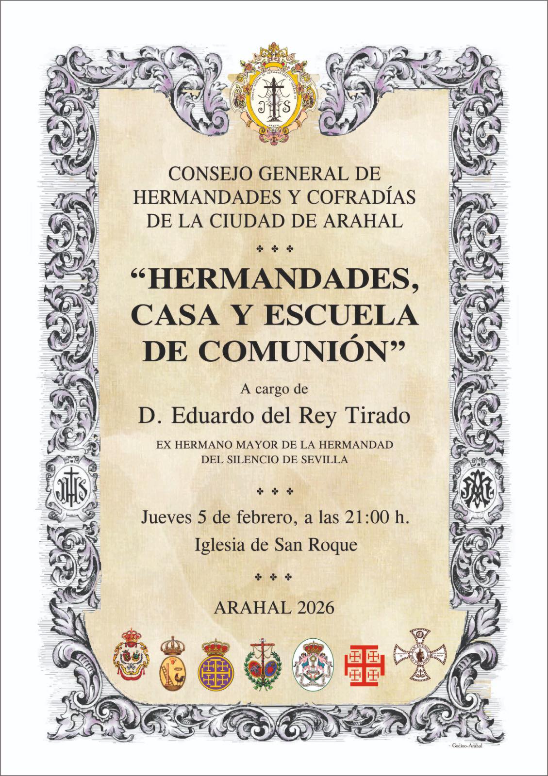 Tercera jornada de formación del Consejo de Hermandades y Cofradías. El título de la conferencia es "Hermandades, casa y escuela de comunión" y será pronunciada por D. Eduardo del Rey Tirado, ex- Hermano Mayor del Silencio y ex- consejero del Consejo de Hermandades de Sevilla.